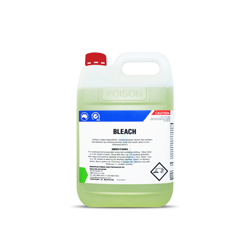 - Available in formulations containing between 1% and 12% sodium hypochlorite.